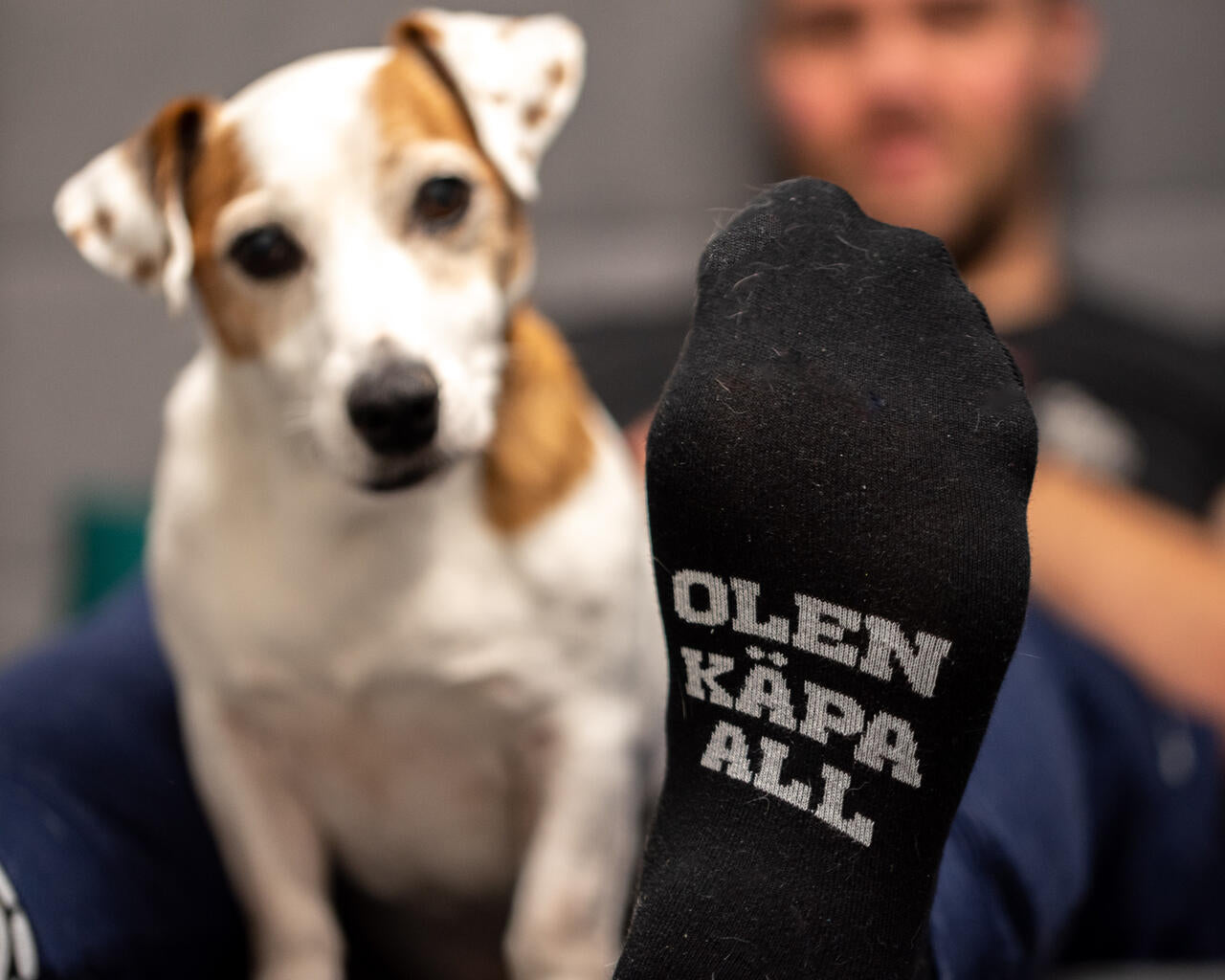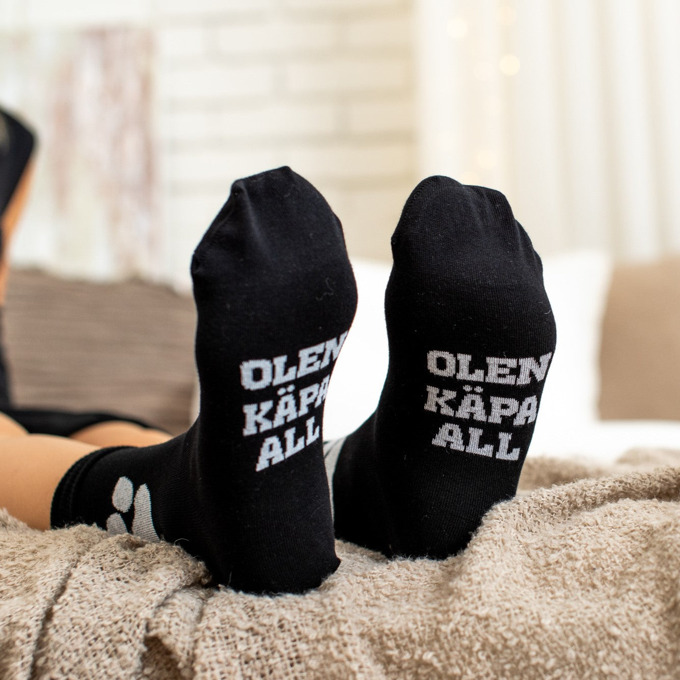 “Olen käpa all” toetajamärgised sokid on klassikalised sokid, mis sobivad igapäevaseks kasutamiseks. Puuvillasegu kangas tagab pehmuse ja mugavuse.